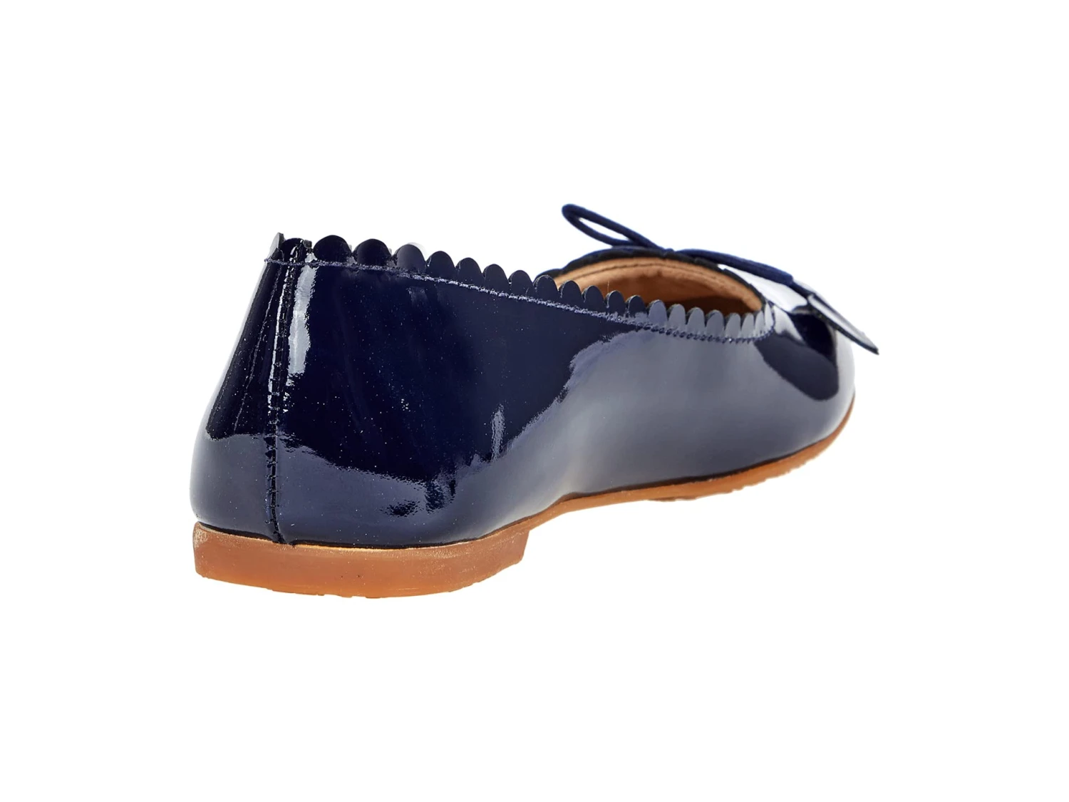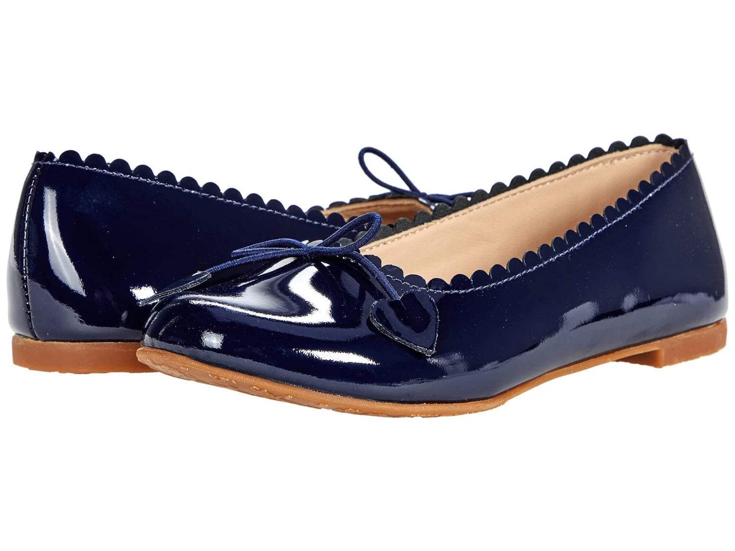 - Premium leather upper with scalloped edging and bow decal with hearts.