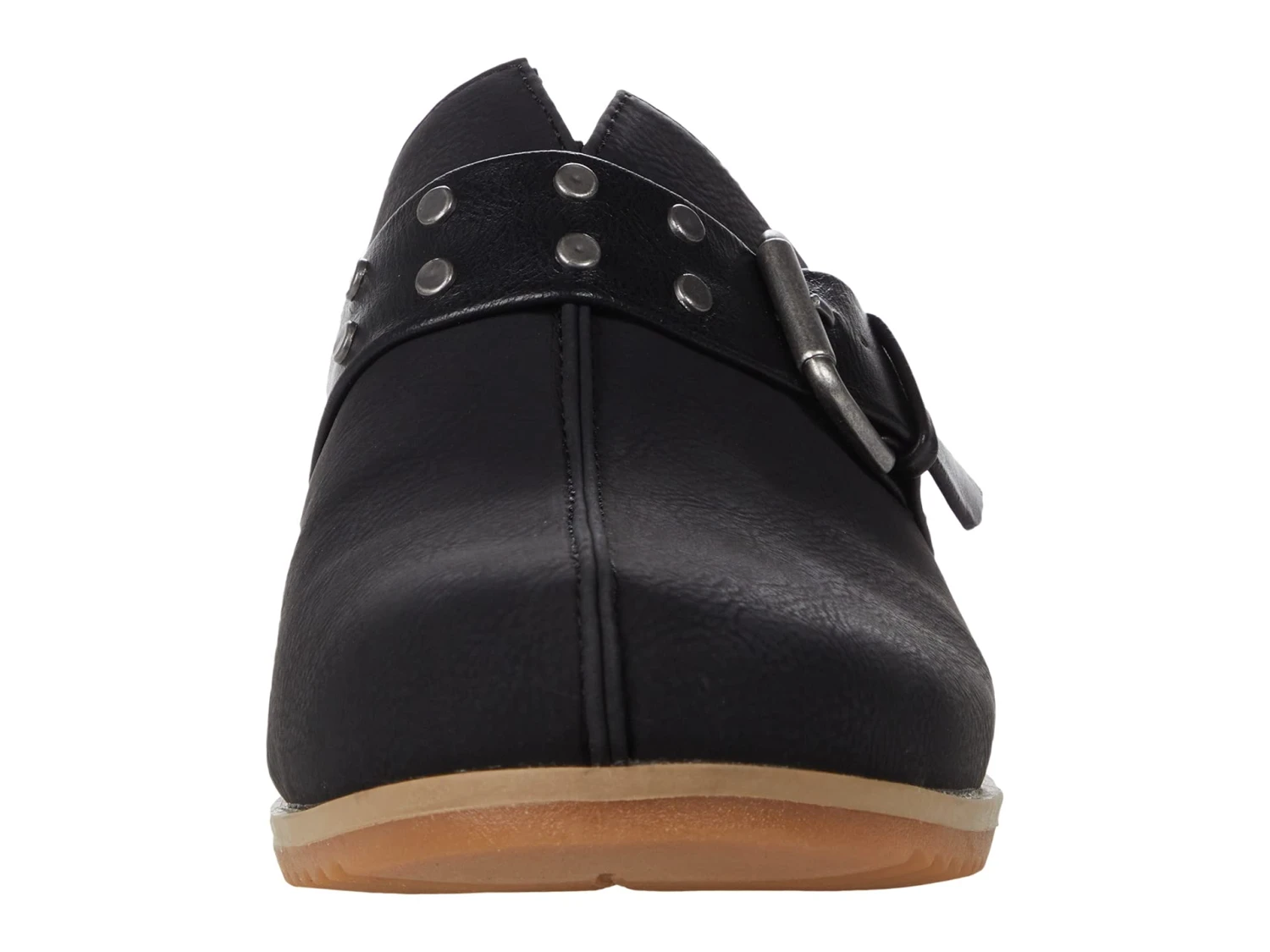 - Clog silhouette with round toe design and wedge heel.