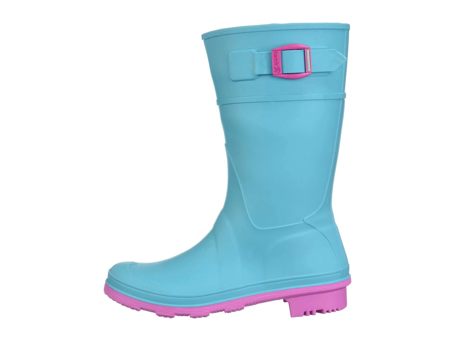 - Mid-calf rainboots are designed with a rounded-toe, side-buckle detail, moisture-wicking lining, and a padded synthetic footbed. A gripped rubber outsole provides traction for wet surfaces.