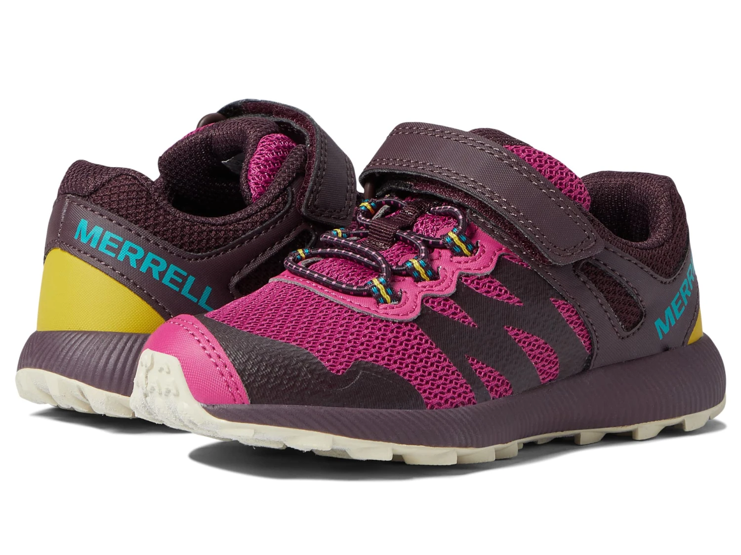 - When they want a little color but not too bright, choose the Merrell® Kids Nova 2, featuring elastic laces and hook-and-loop closure and non-marking outsole with M Select™ GRIP for superior traction.