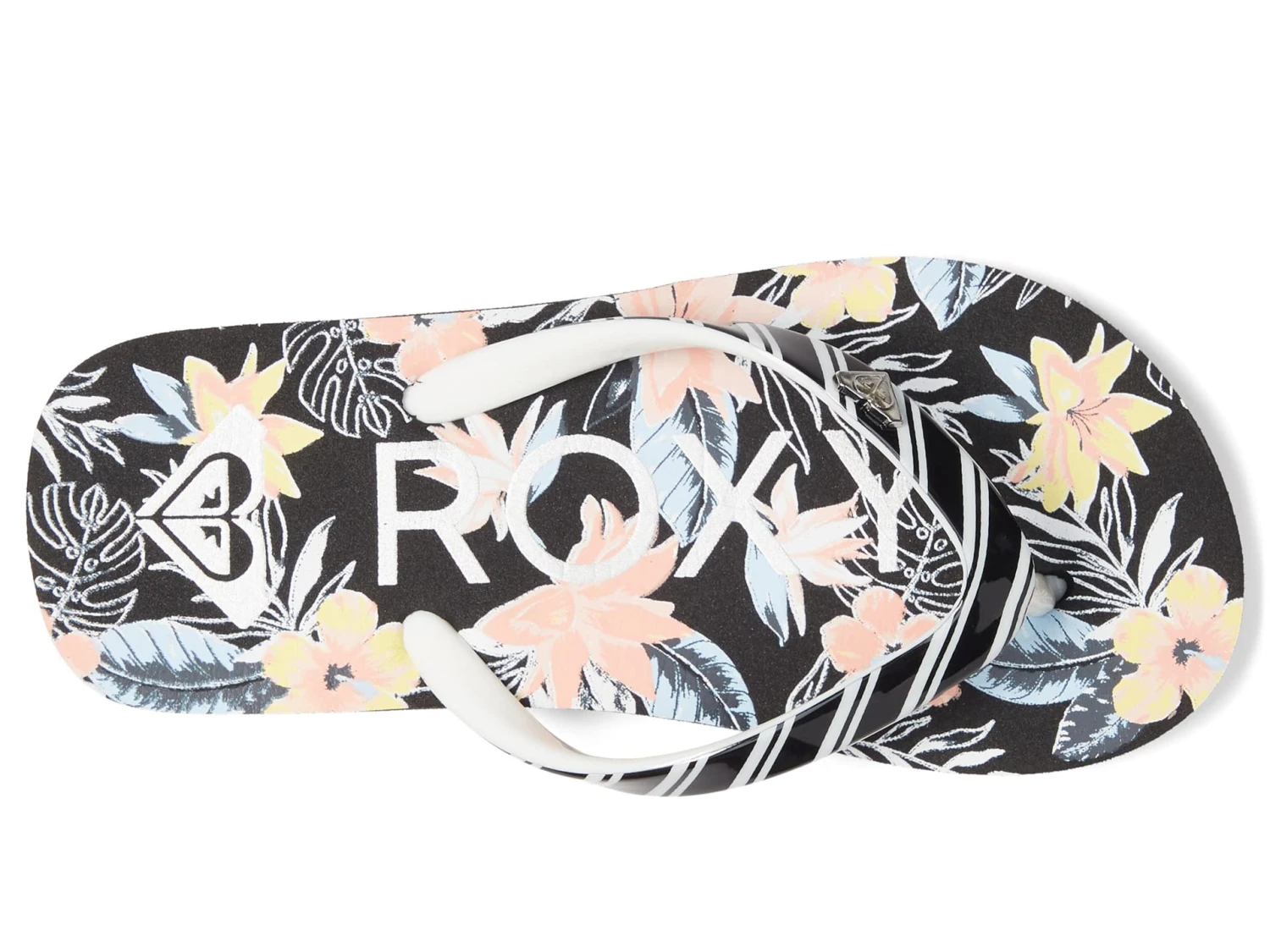 - Featuring a patterned synthetic upper, open three-point construction and a rolled toe post, the Roxy® Kids Pebbles VII sandals will take her from the pool to party in style.