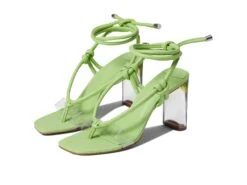 - Strapped and knotted design on top of foot with wrap and tie closure around ankle.