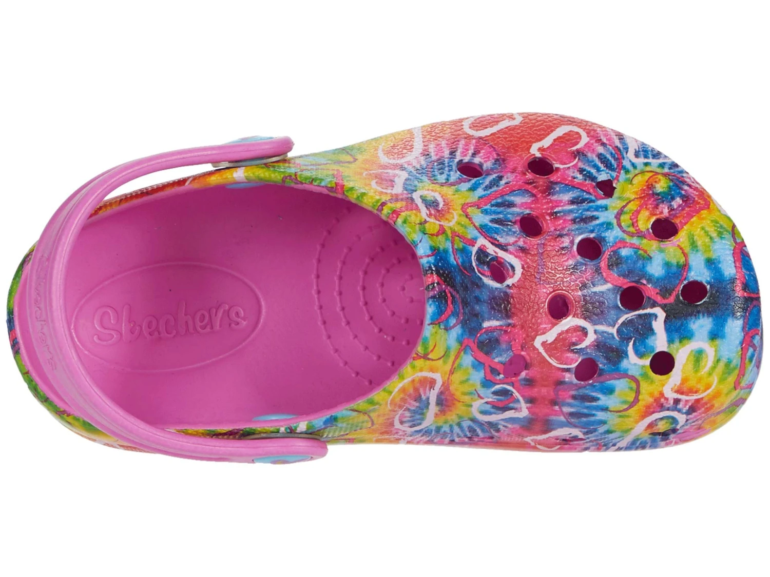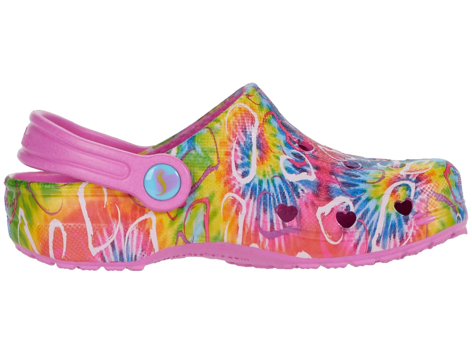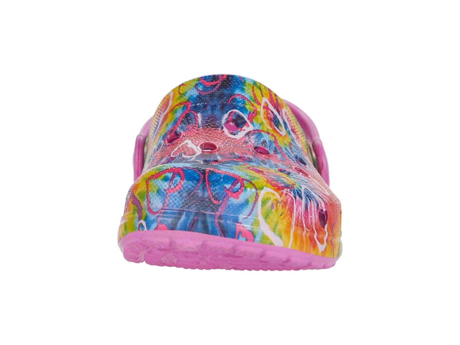 - EVA upper features tye-dye and heart detail across vamp.