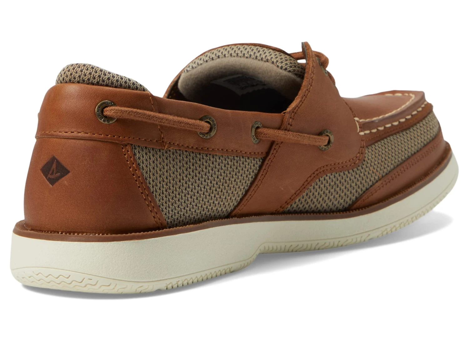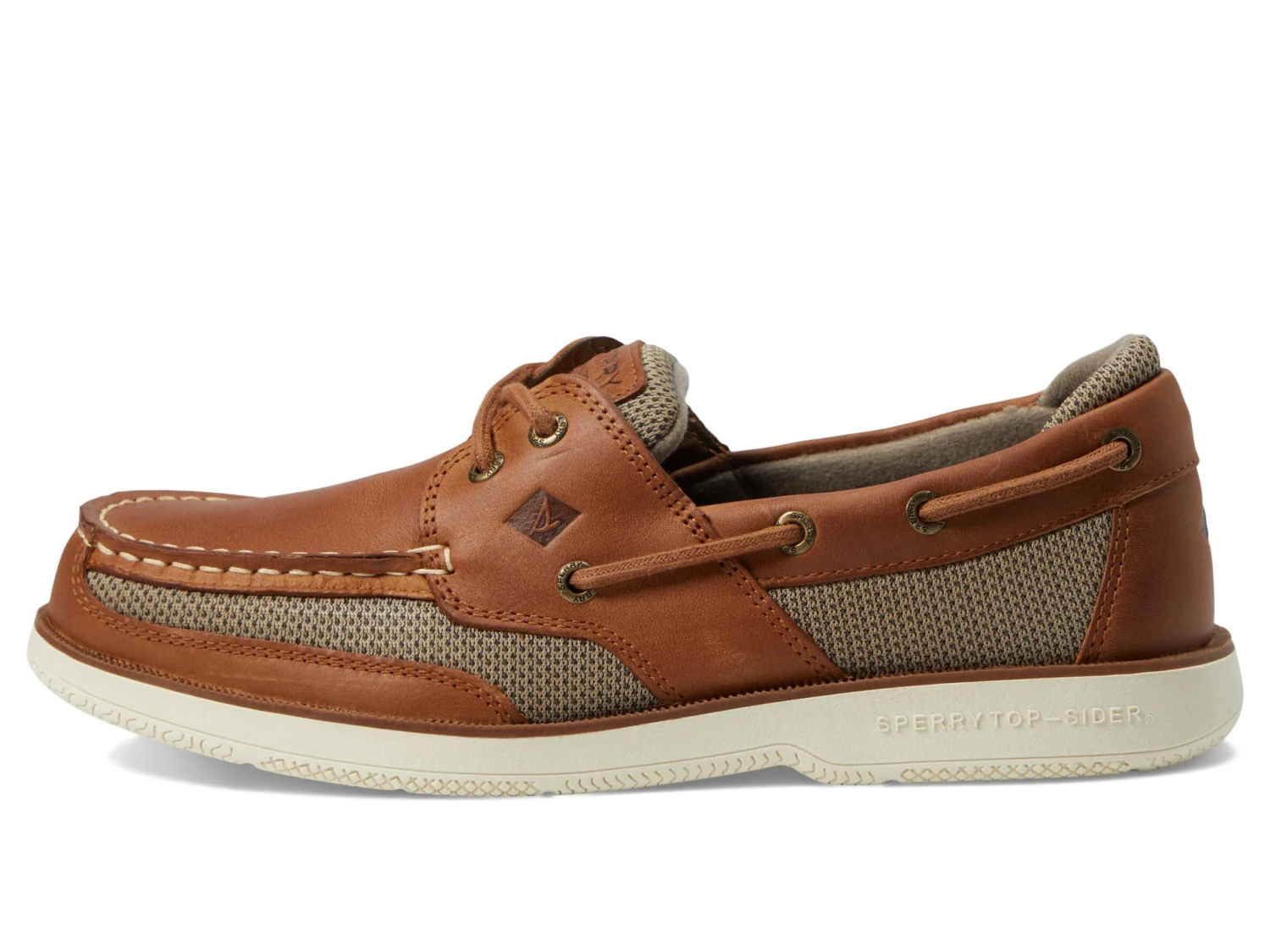 - Featuring a leather and mesh upper, be prepared for any adventure wearing the Sperry® Top-Sider Surveyor 2-Eye boat shoe with a 360° lace-up closure.